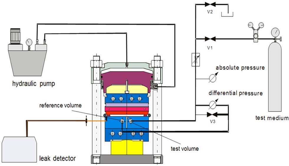 In total, the procedure consists of two high-pressure (HP) tests at 6 megapascal (MPa) (870 pounds per square inch [psi]) of helium and two low-pressure (LP) tests at 2 MPa (290 psi) of helium, for a total of four tests on four different specimens. In addition to the differences in internal pressure, the HP and LP tests are also distinct from each other in terms of the gasket loading sequences.