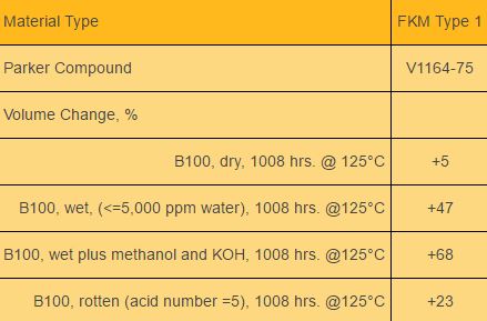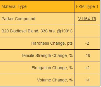 In this case, the best materials for biodiesel in this testing, Parker compounds VG286-80 and V1289-75, also offer improved low temperature performance.