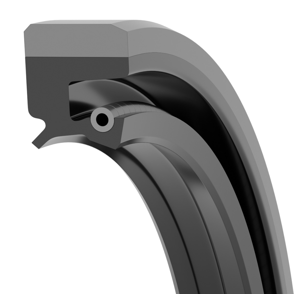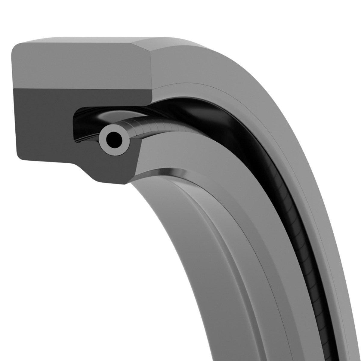 The most unique feature of the Clipper oil seal is nonmetallic construction. The metal case that is common with traditional lip seals is replaced with an aramid fiber and elastomer composite material.