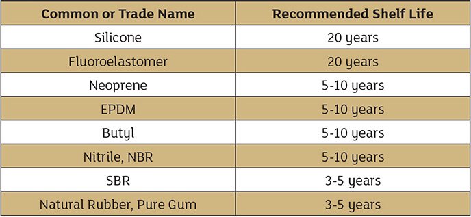 Without getting into the details of the multitude of variables that affect the natural lifespan of each component, the useful life of gasket material is difficult to determine when storage environments differ from the recommended conditions. However, if storage guidelines are followed, there are some generally accepted storage periods for various materials. As an example, some guidelines for common elastomer compounds are shown in Table 1. Consult the gasket manufacturer, as different binders and fibers may have special requirements.