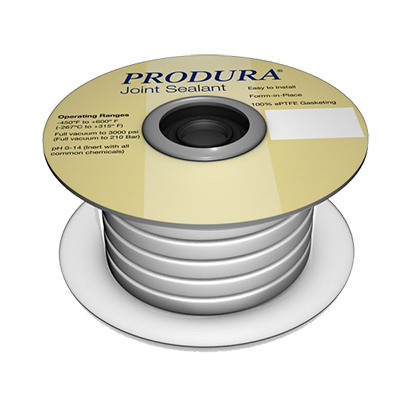 PRODURA joint sealant is a chemically inert cord sealant made with 100% expanded PTFE. It is an ideal form-in-place sealant for industrial gasketing users who wish to balance sealing reliability with cost.